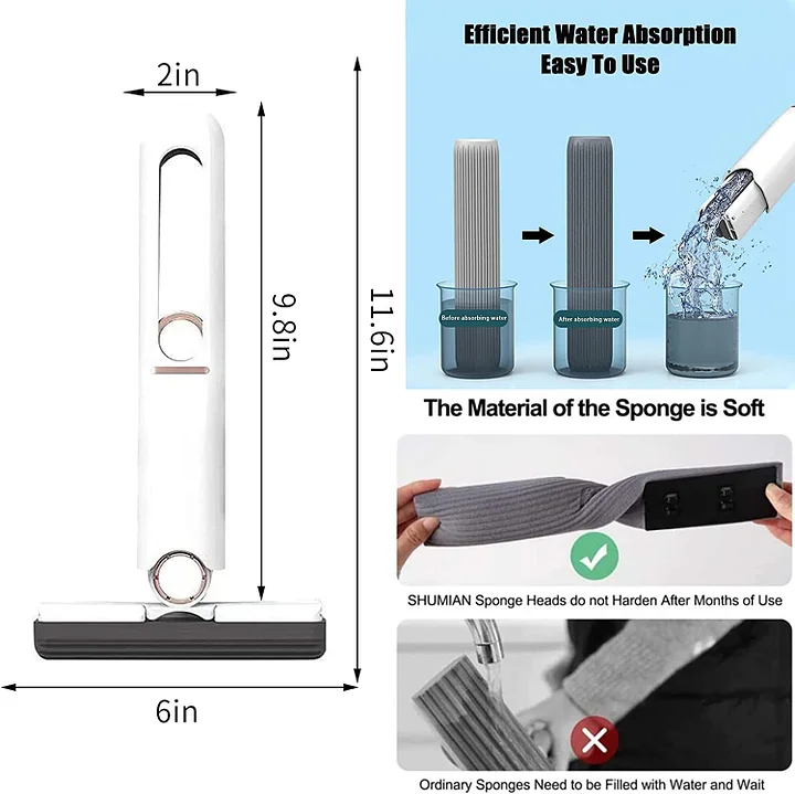 Der tragbare Mini-Mopp mit Selbstabsaugung ist kompakt und leicht, so dass Sie mühelos auch enge Ecken, schmale Räume und schwer zugängliche Stellen erreichen können. Kein Kampf mehr mit schweren Eimern oder sperrigen Mopps!